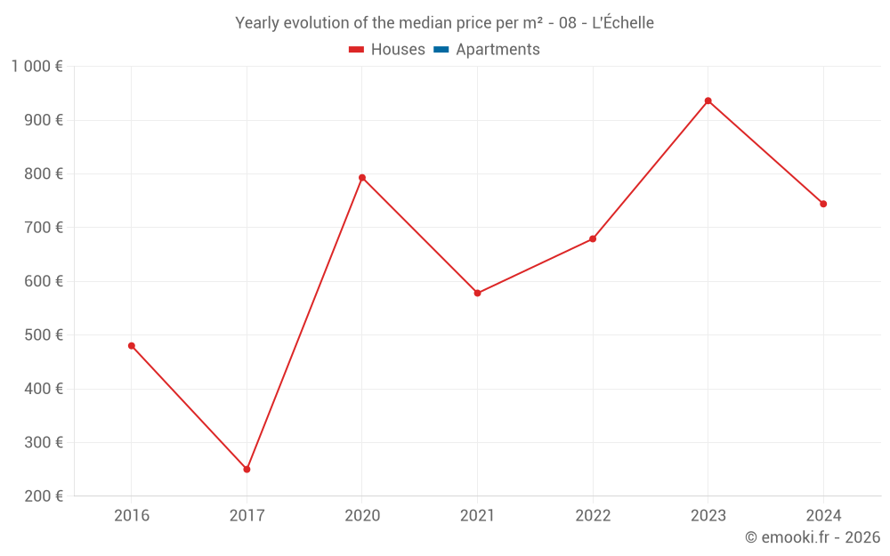 Real estate price map in the municipality of L'Échelle, choose a section to see transactions by parcel.