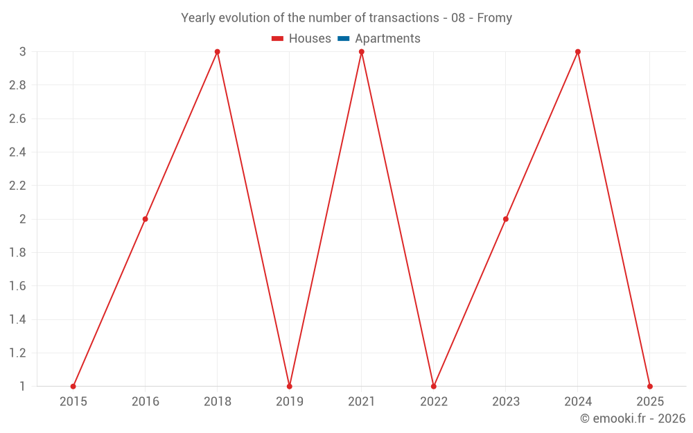 Real estate price map in the municipality of Fromy, choose a section to see transactions by parcel.
