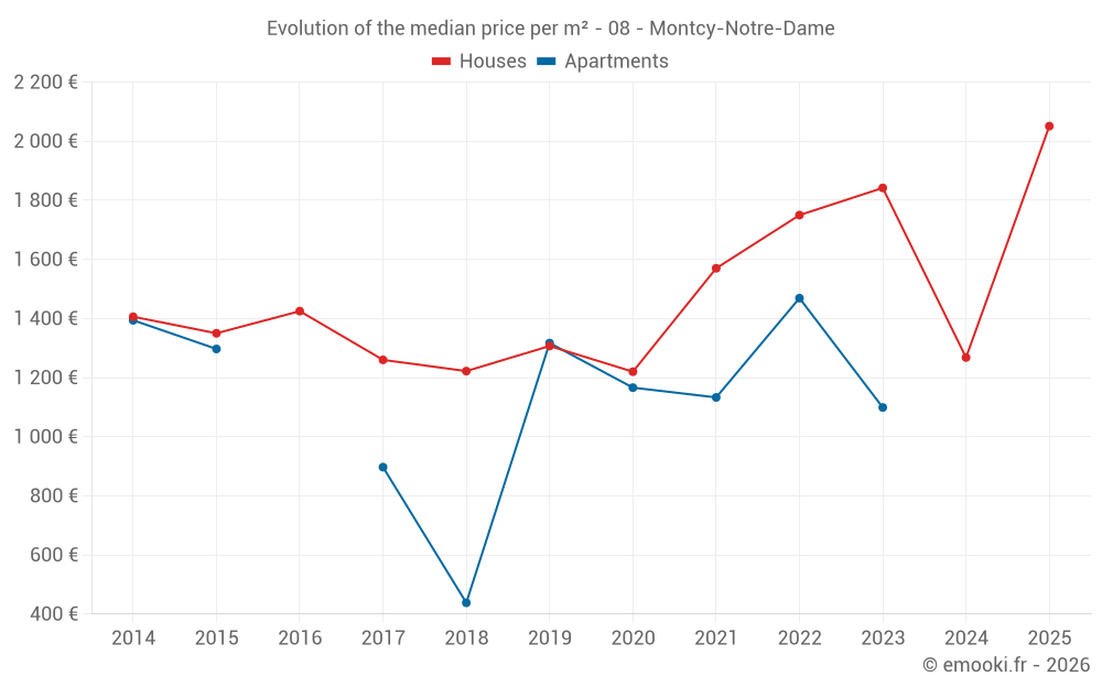 Median price on the 23 transactions of the last 24 months.