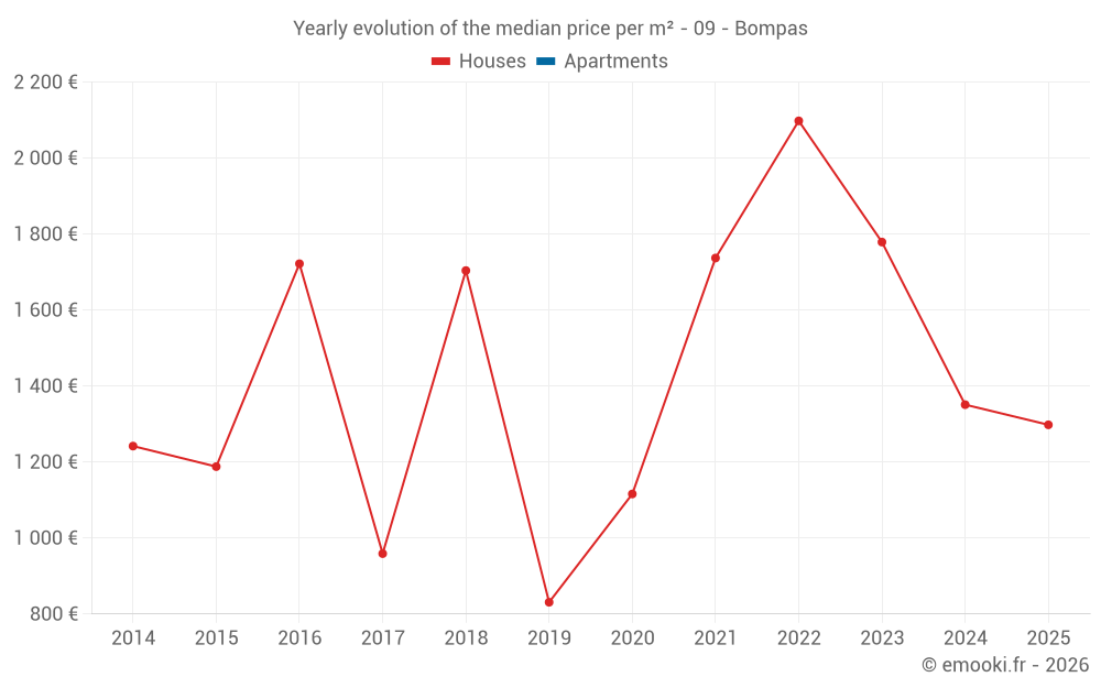 Evolution of the median price per m² of houses