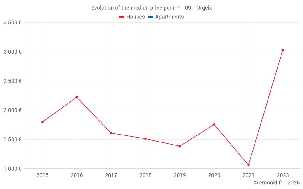 Real estate price map in the municipality of Orgeix, choose a section to see transactions by parcel.