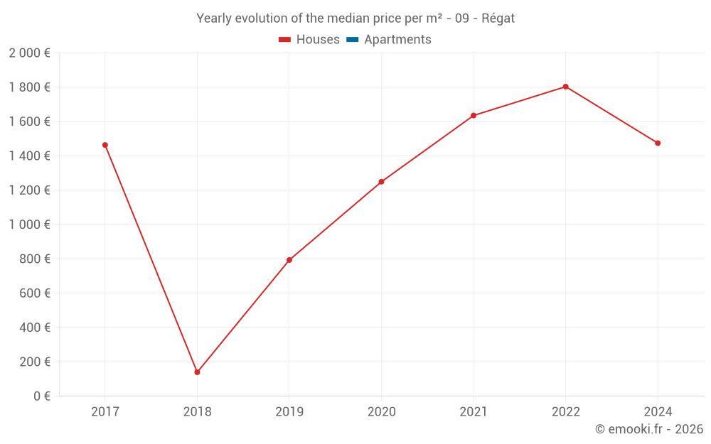 Real estate price map in the municipality of Régat, choose a section to see transactions by parcel.