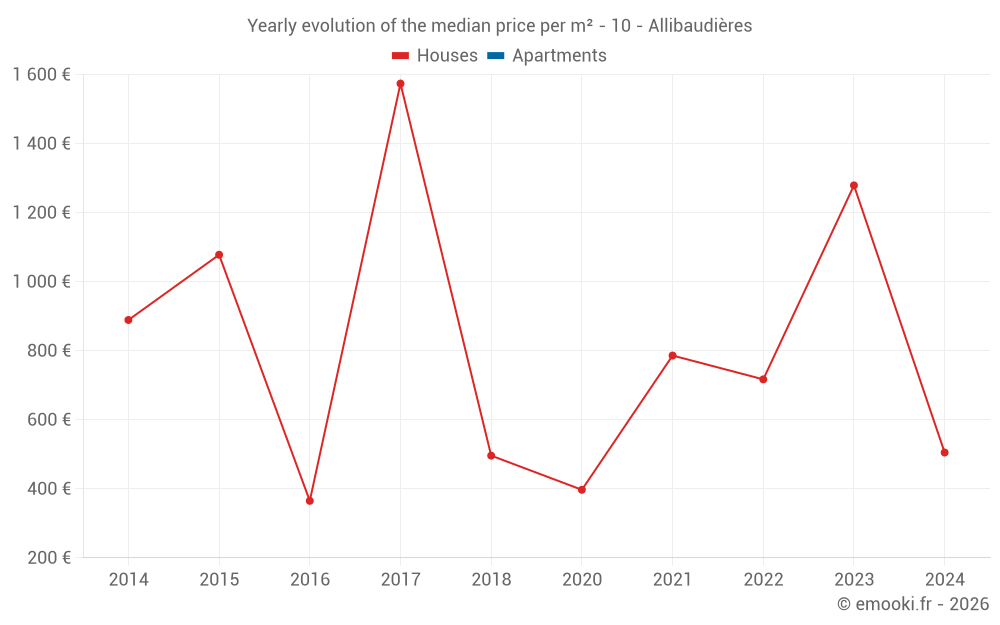 Evolution of the median price per m² of houses