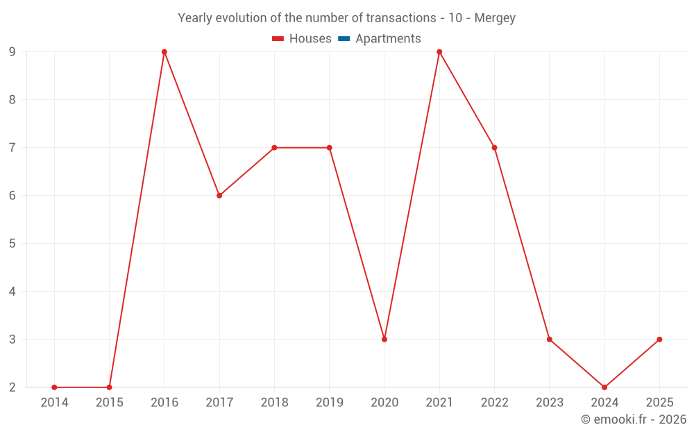 Real estate price map in the municipality of Mergey, choose a section to see transactions by parcel.