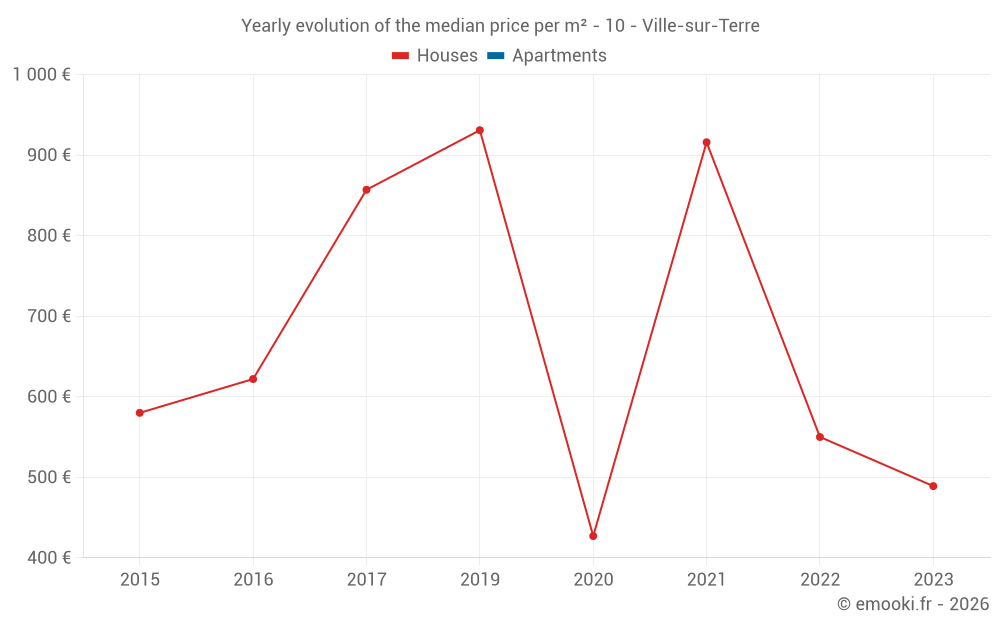 Real estate price map in the municipality of Ville-sur-Terre, choose a section to see transactions by parcel.