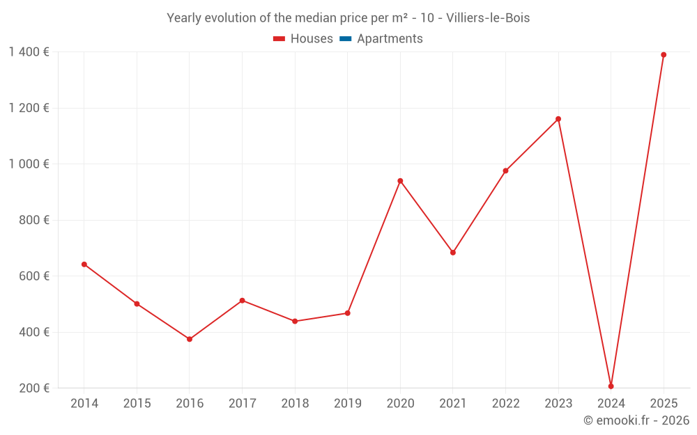 Real estate price map in the municipality of Villiers-le-Bois, choose a section to see transactions by parcel.