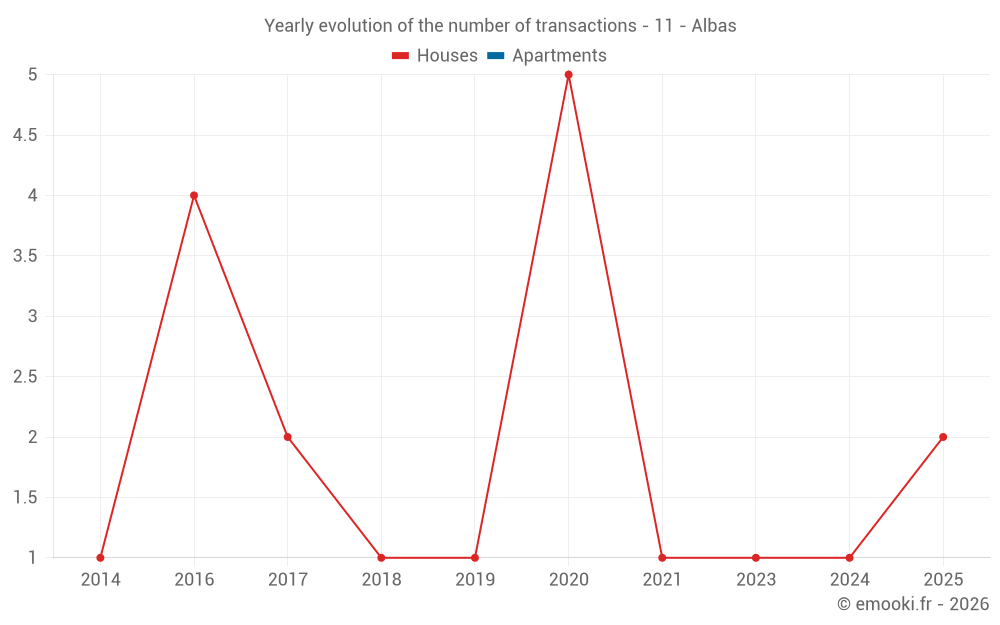 Real estate price map in the municipality of Albas, choose a section to see transactions by parcel.