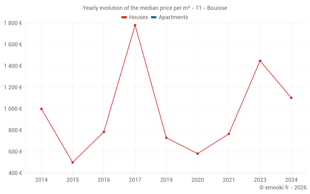 Real estate price map in the municipality of Bouisse, choose a section to see transactions by parcel.