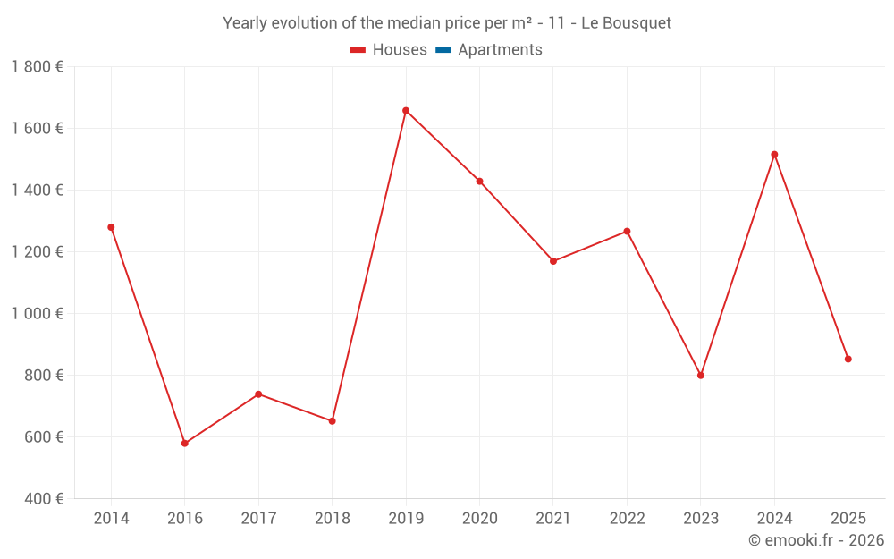 Real estate price map in the municipality of Le Bousquet, choose a section to see transactions by parcel.