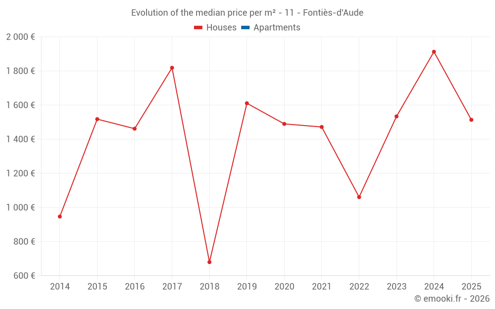 Real estate price map in the municipality of Fontiès-d'Aude, choose a section to see transactions by parcel.