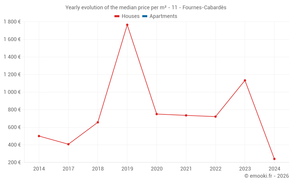 Real estate price map in the municipality of Fournes-Cabardès, choose a section to see transactions by parcel.