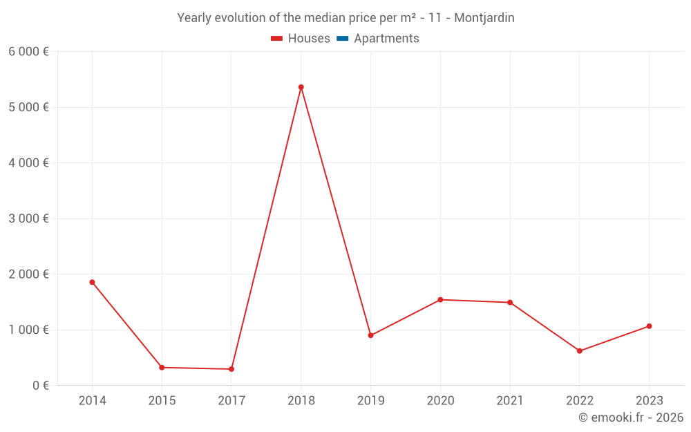Real estate price map in the municipality of Montjardin, choose a section to see transactions by parcel.