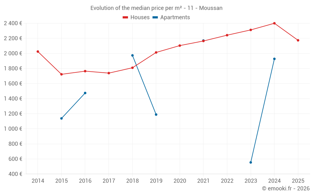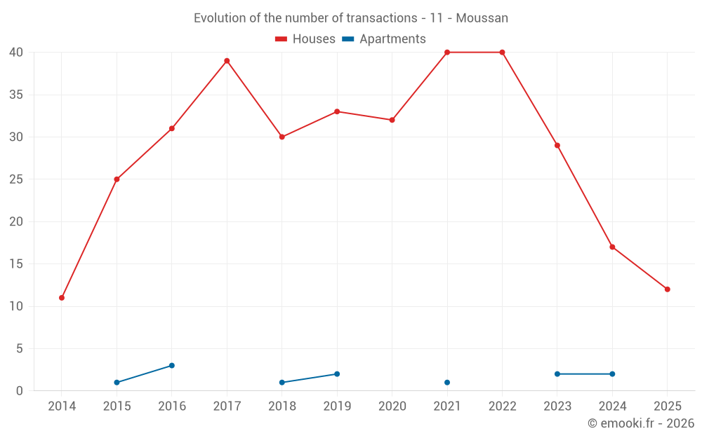Median price on the 21 transactions of the last 12 months.