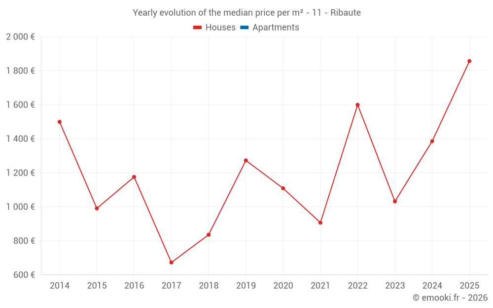 Real estate price map in the municipality of Ribaute, choose a section to see transactions by parcel.