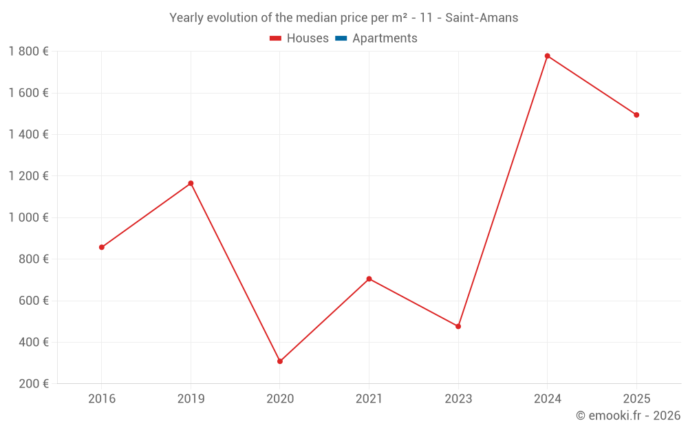 Evolution of the median price per m² of houses