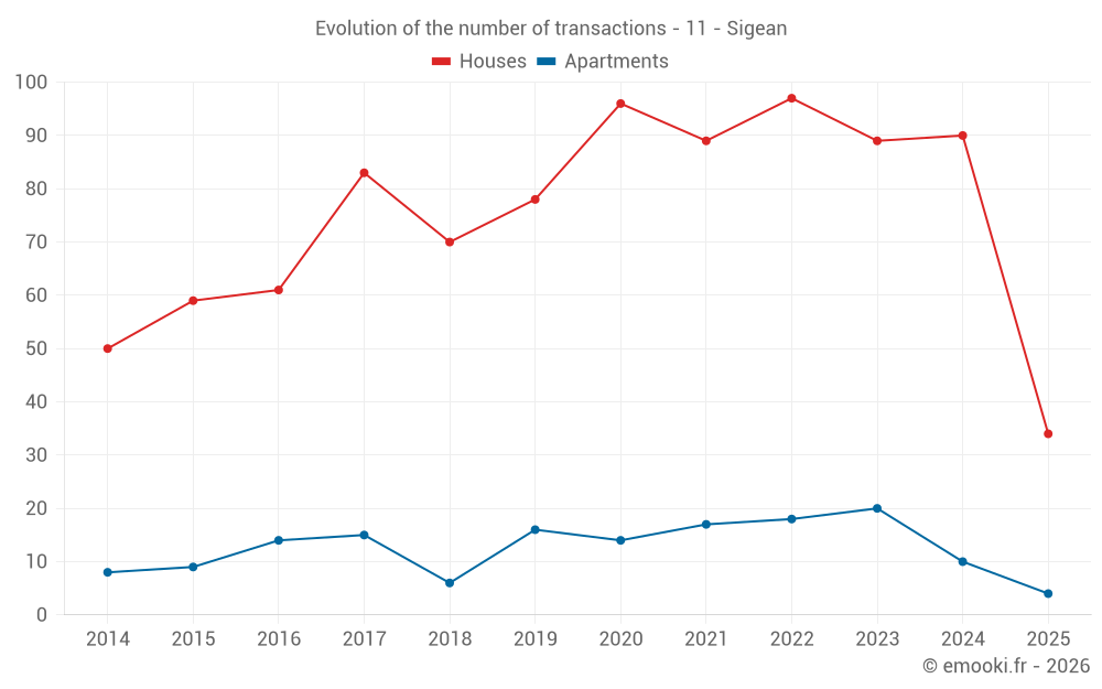 Median price on the 34 transactions of the last 6 months.