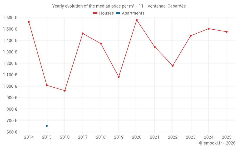 Real estate price map in the municipality of Ventenac-Cabardès, choose a section to see transactions by parcel.