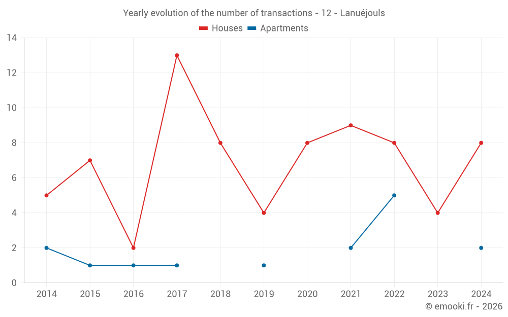 Real estate price map in the municipality of Lanuéjouls, choose a section to see transactions by parcel.