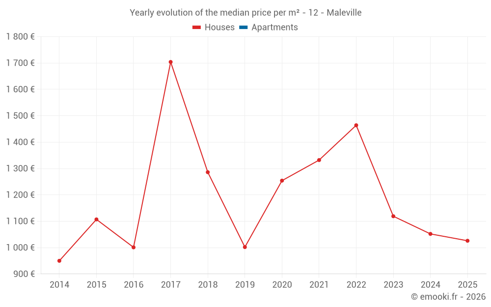 Real estate price map in the municipality of Maleville, choose a section to see transactions by parcel.