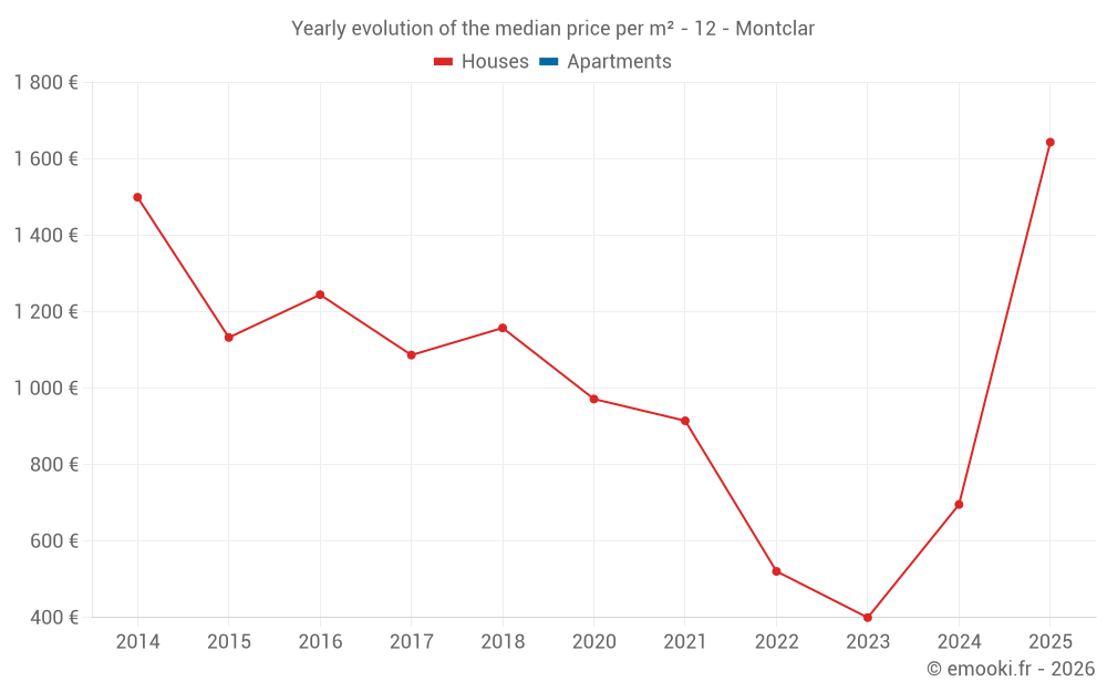 Real estate price map in the municipality of Montclar, choose a section to see transactions by parcel.
