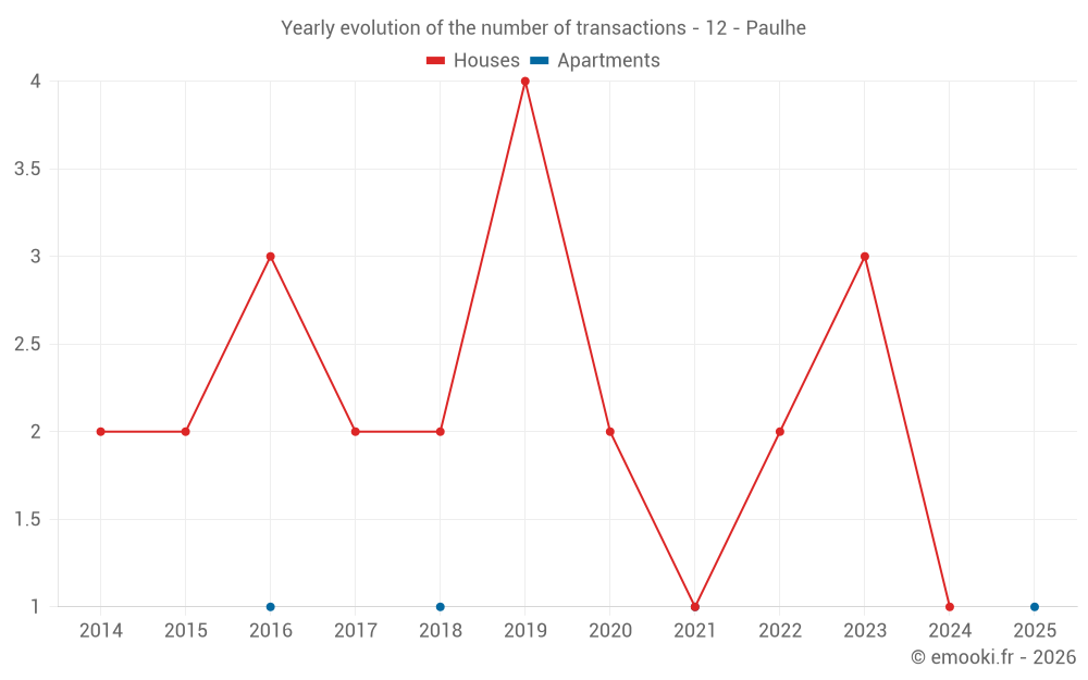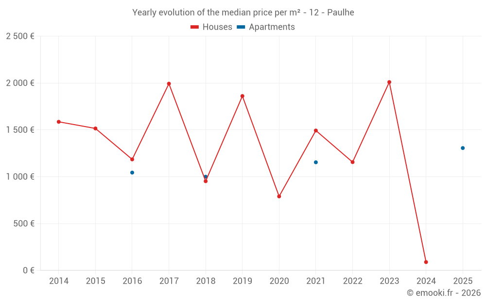 Real estate price map in the municipality of Paulhe, choose a section to see transactions by parcel.