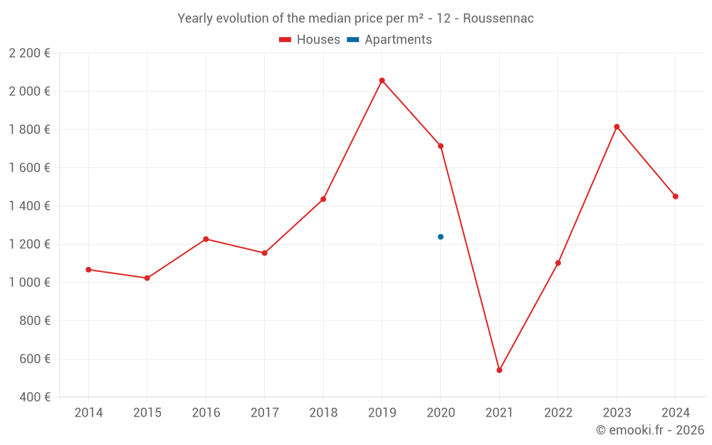 Real estate price map in the municipality of Roussennac, choose a section to see transactions by parcel.