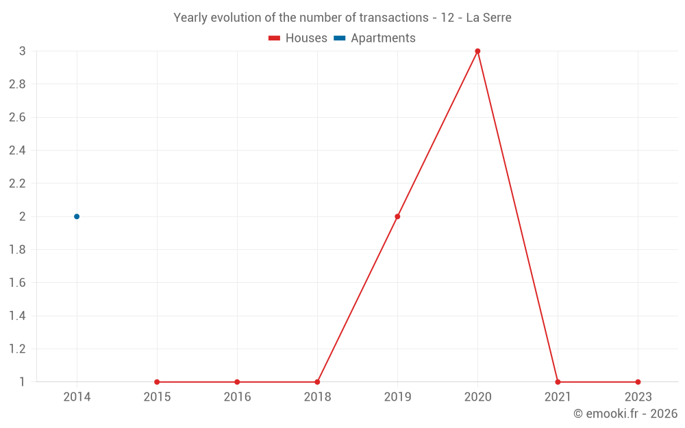 Real estate price map in the municipality of La Serre, choose a section to see transactions by parcel.
