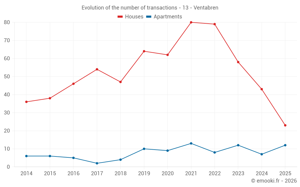 Median price on the 23 transactions of the last 6 months.