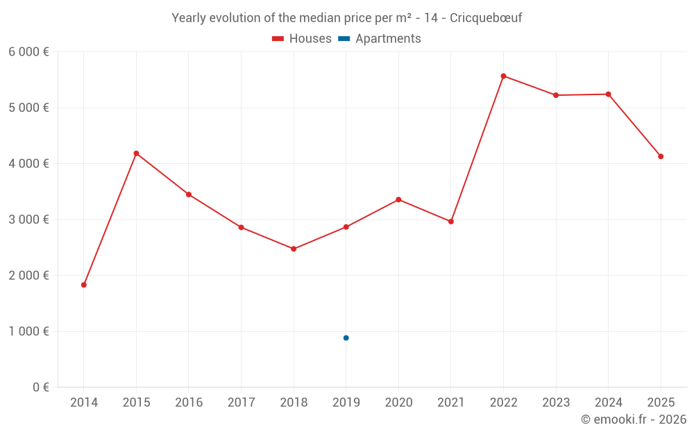 Real estate price map in the municipality of Cricquebœuf, choose a section to see transactions by parcel.