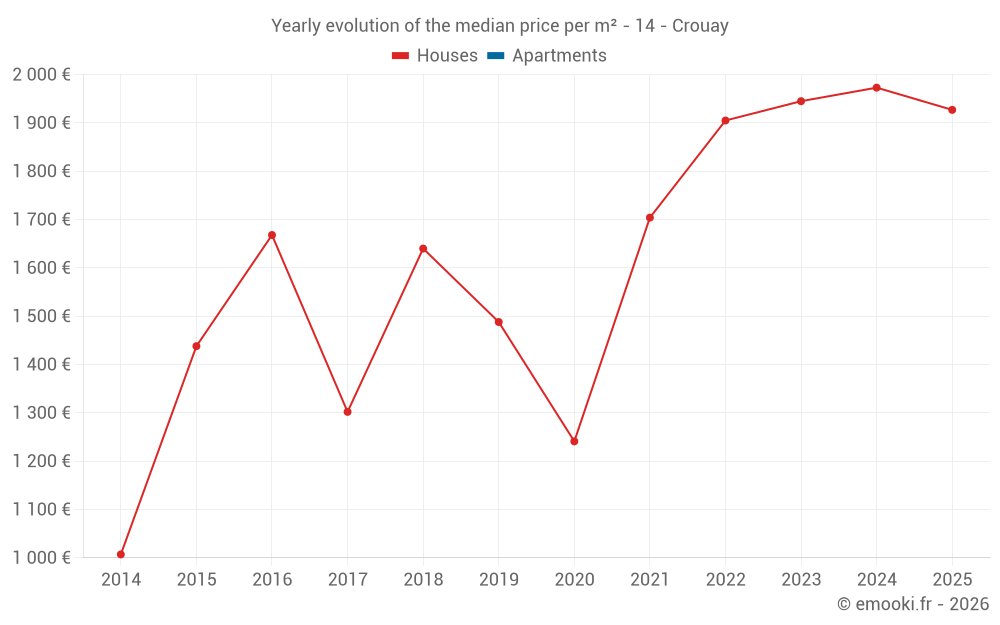 Real estate price map in the municipality of Crouay, choose a section to see transactions by parcel.