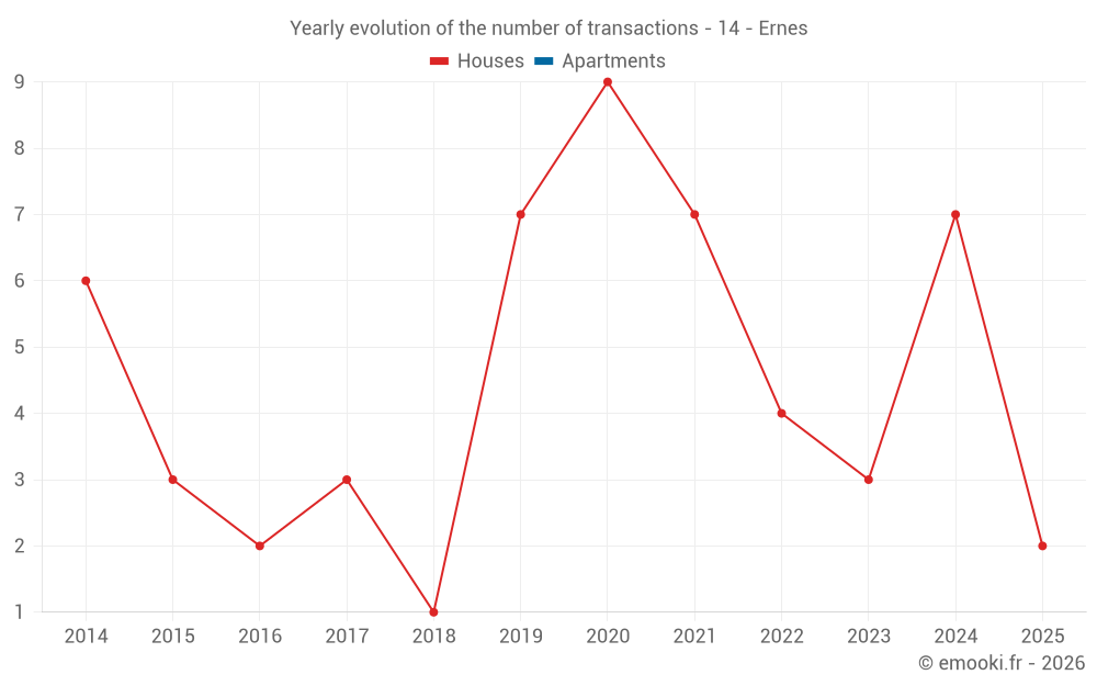 Real estate price map in the municipality of Ernes, choose a section to see transactions by parcel.