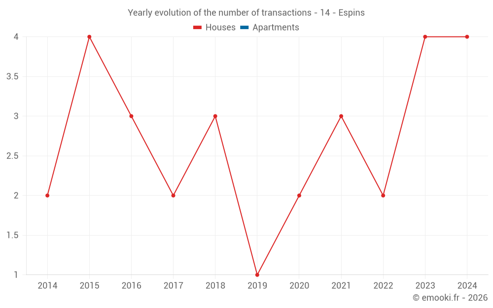 Real estate price map in the municipality of Espins, choose a section to see transactions by parcel.