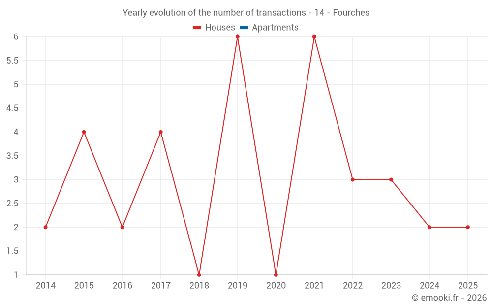Real estate price map in the municipality of Fourches, choose a section to see transactions by parcel.
