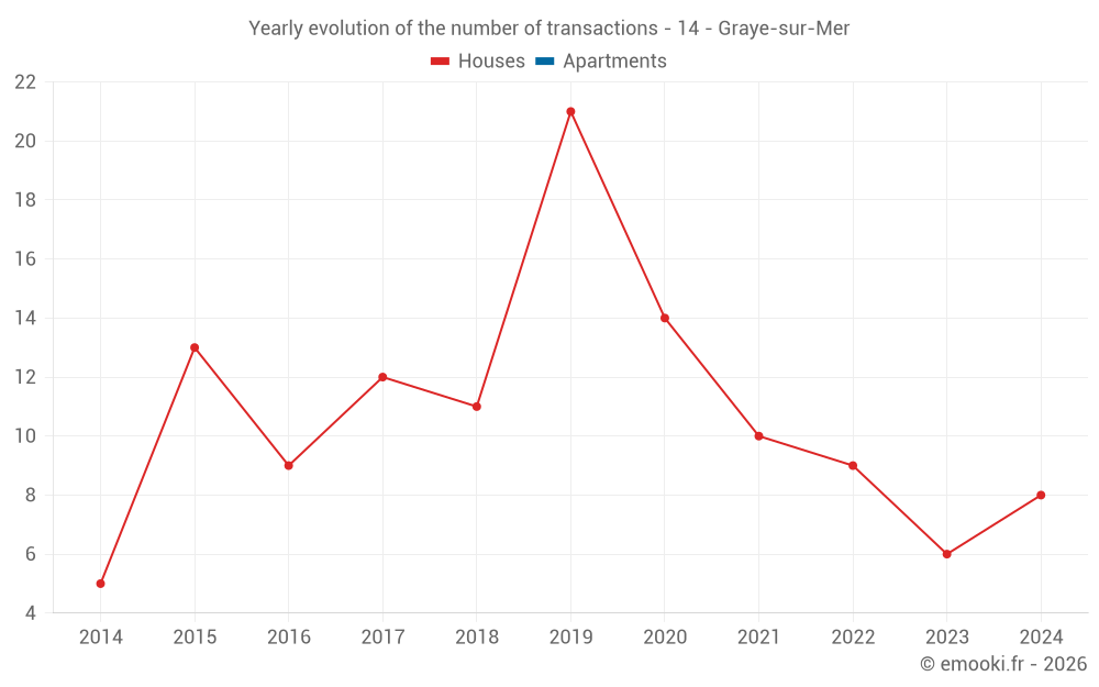 Real estate price map in the municipality of Graye-sur-Mer, choose a section to see transactions by parcel.
