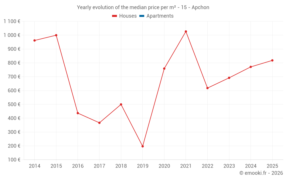 Real estate price map in the municipality of Apchon, choose a section to see transactions by parcel.