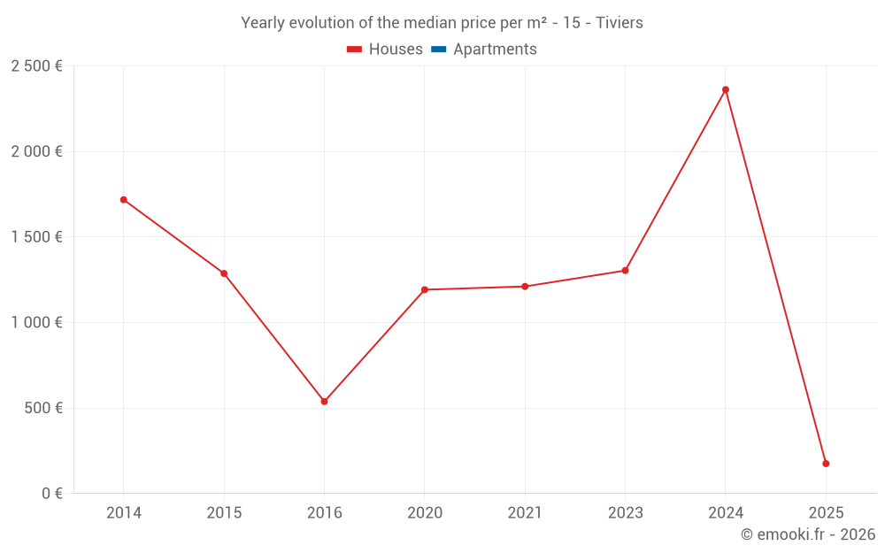 Real estate price map in the municipality of Tiviers, choose a section to see transactions by parcel.