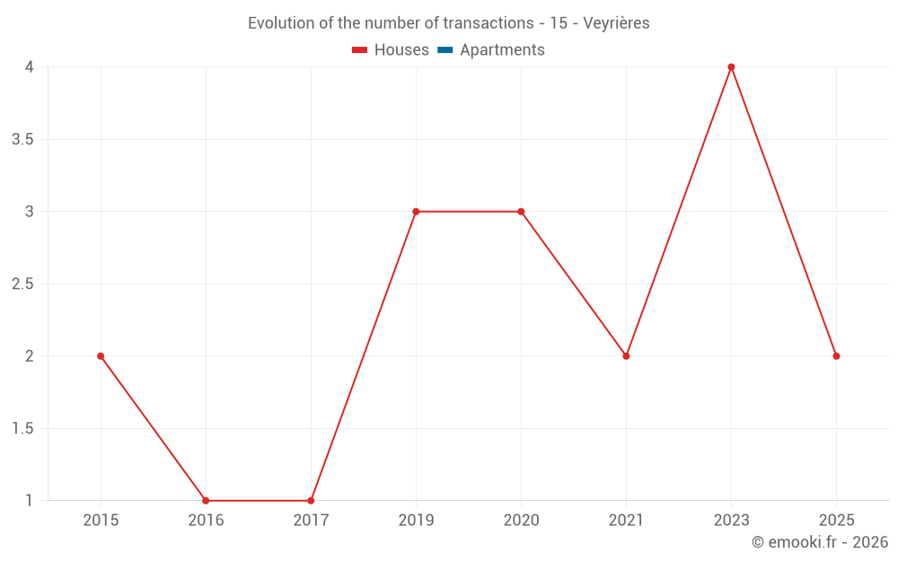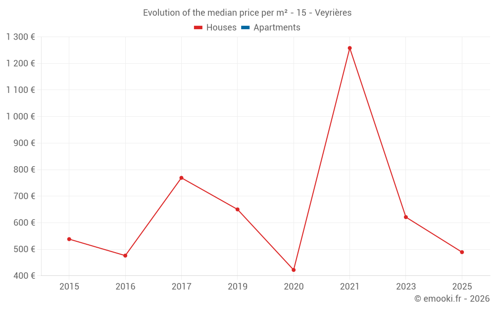 Real estate price map in the municipality of Veyrières, choose a section to see transactions by parcel.