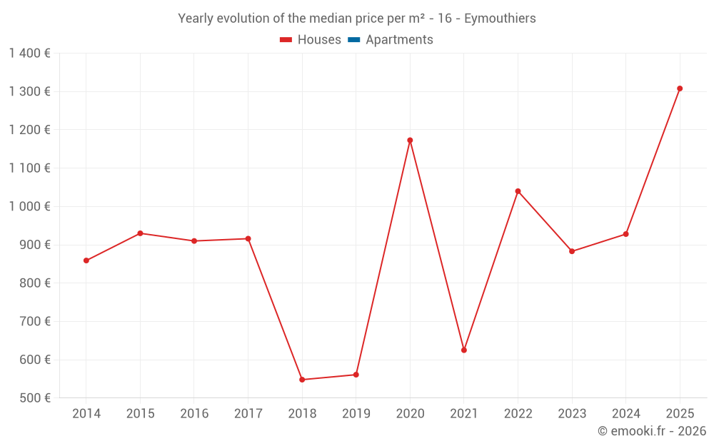 Real estate price map in the municipality of Eymouthiers, choose a section to see transactions by parcel.