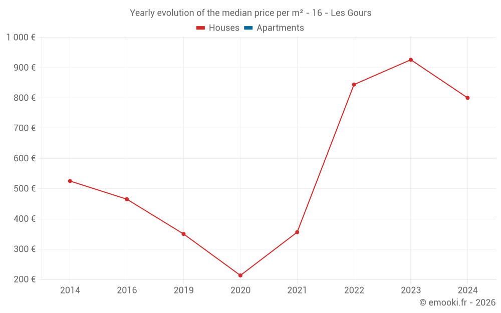 Evolution of the median price per m² of houses