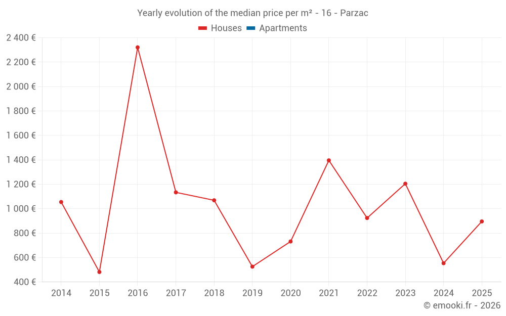 Real estate price map in the municipality of Parzac, choose a section to see transactions by parcel.