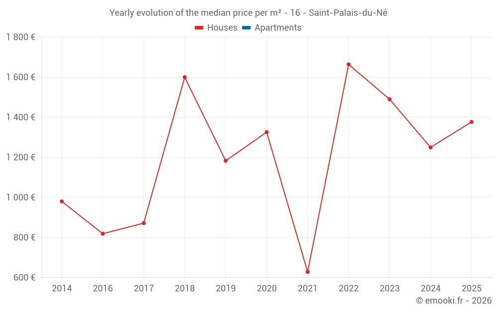 The price per m² of houses has decreased by 7.6% since 2 years, but it has increased by 119% in 4 years.