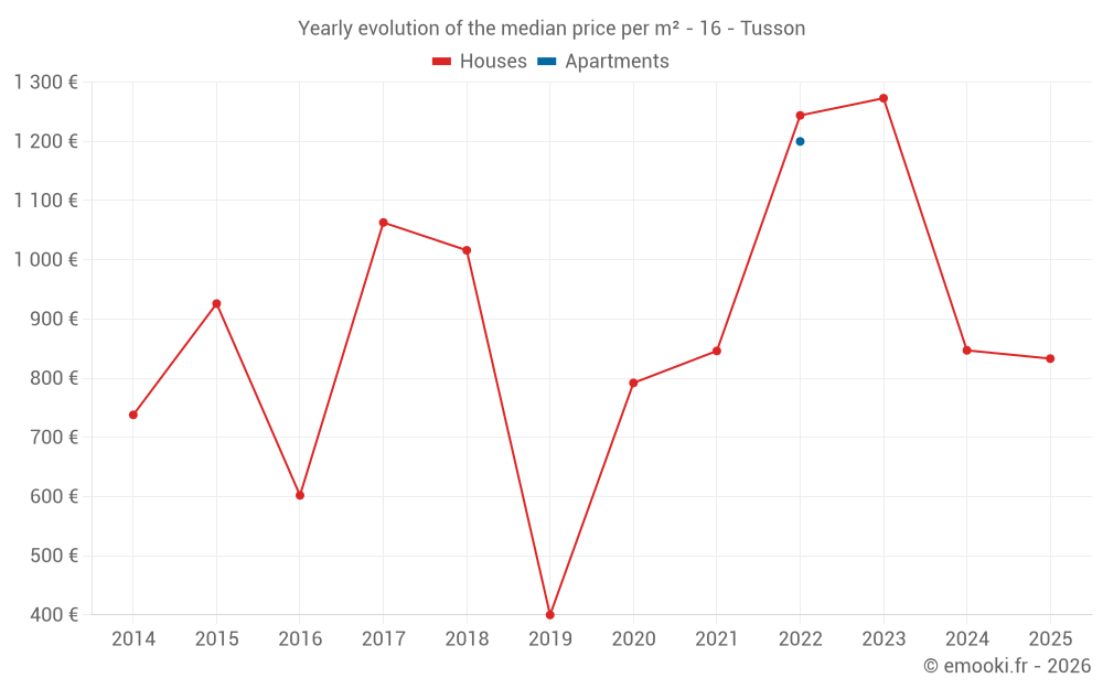 Real estate price map in the municipality of Tusson, choose a section to see transactions by parcel.