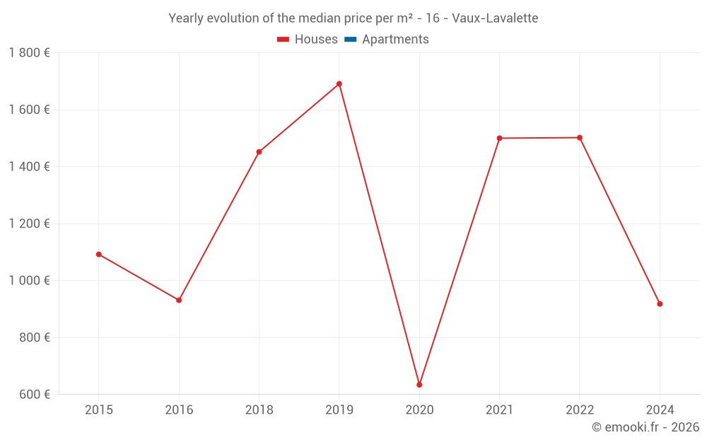Real estate price map in the municipality of Vaux-Lavalette, choose a section to see transactions by parcel.