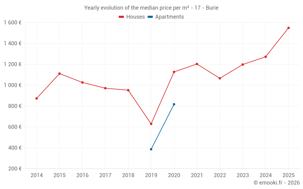 What is the price per m2 of houses in Burie?