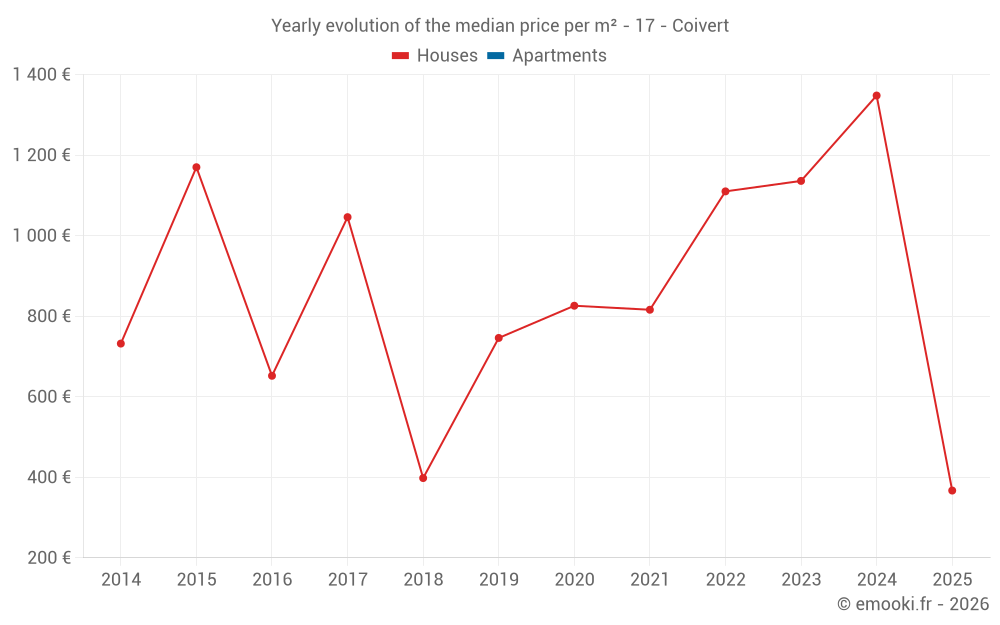 Evolution of the median price per m² of houses