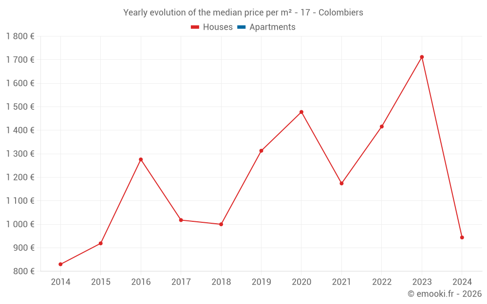 Evolution of the median price per m² of houses