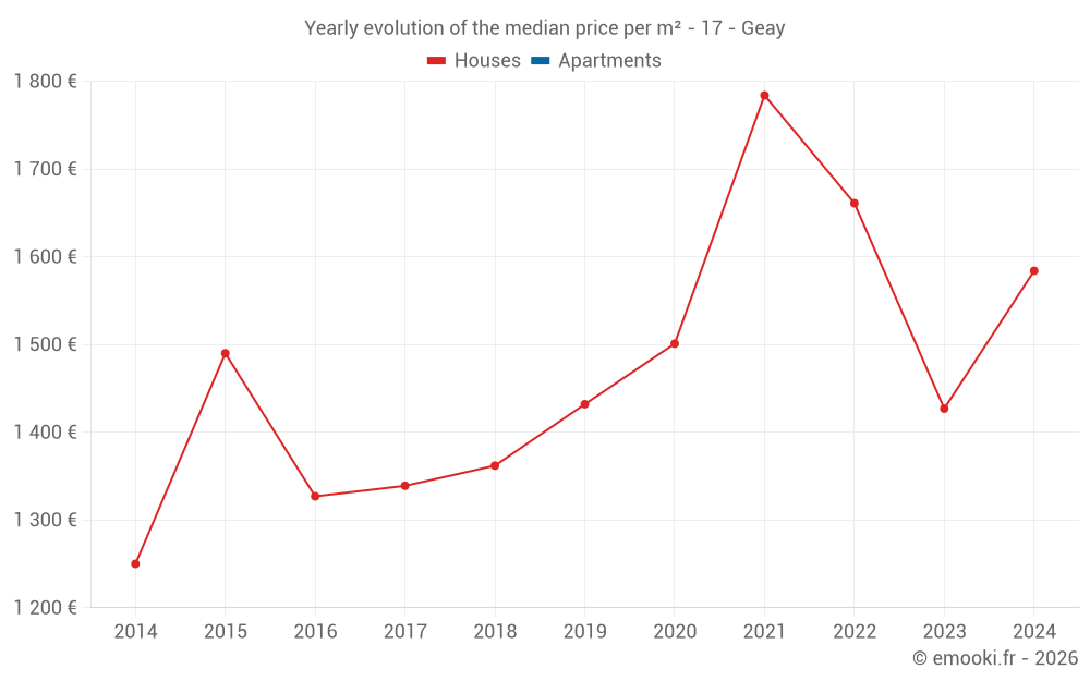 Real estate price map in the municipality of Geay, choose a section to see transactions by parcel.