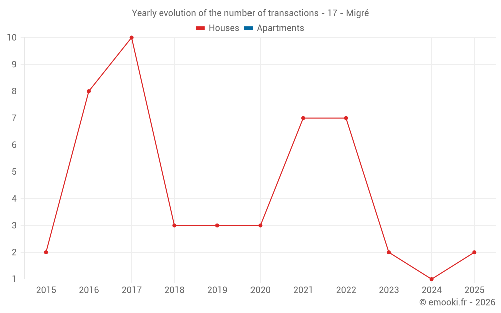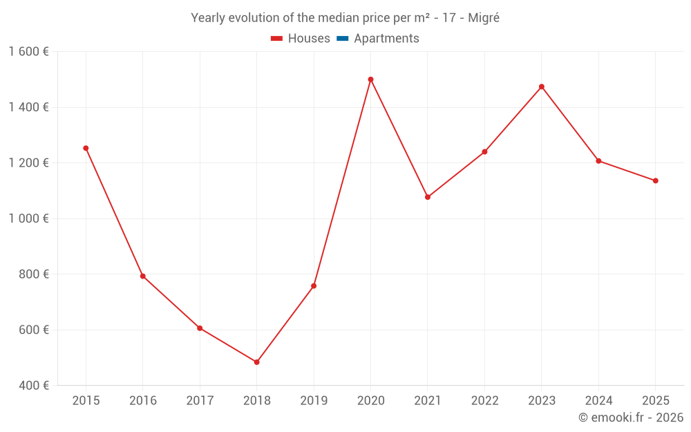 Real estate price map in the municipality of Migré, choose a section to see transactions by parcel.