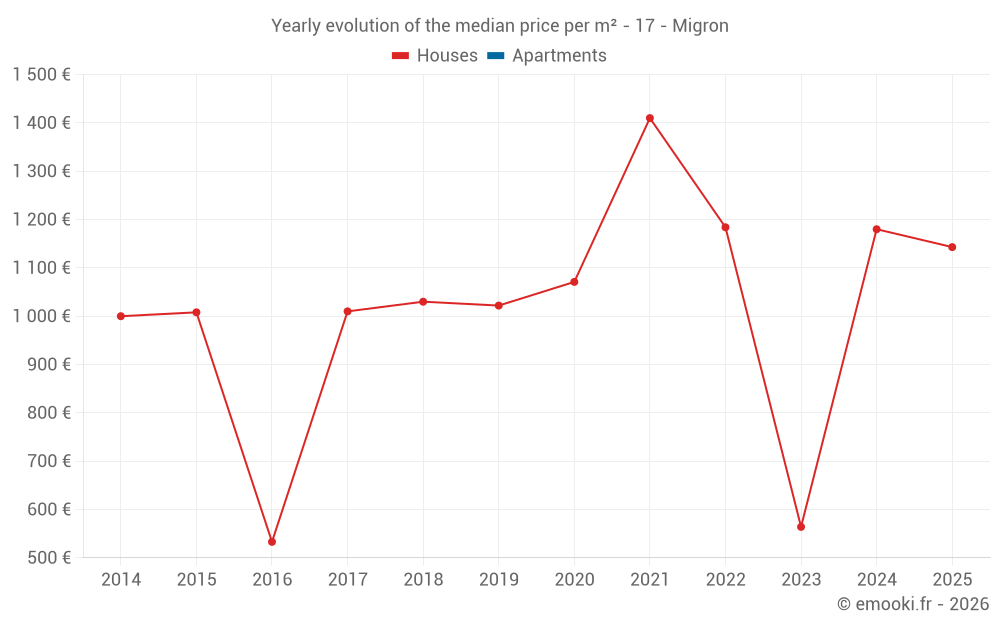 Evolution of the median price per m² of houses