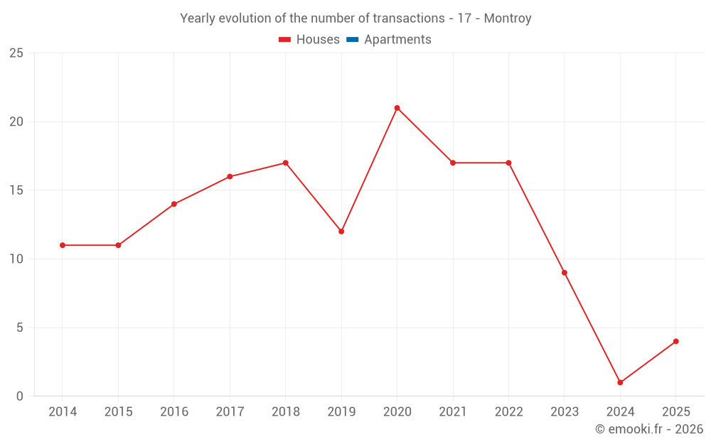 The price per m² of houses has decreased by 16% since 3 years, but it has increased by 75% in 11 years.
